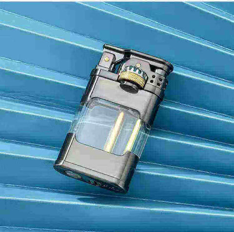 Gear linkage ignition transparent bin kerosene lighter